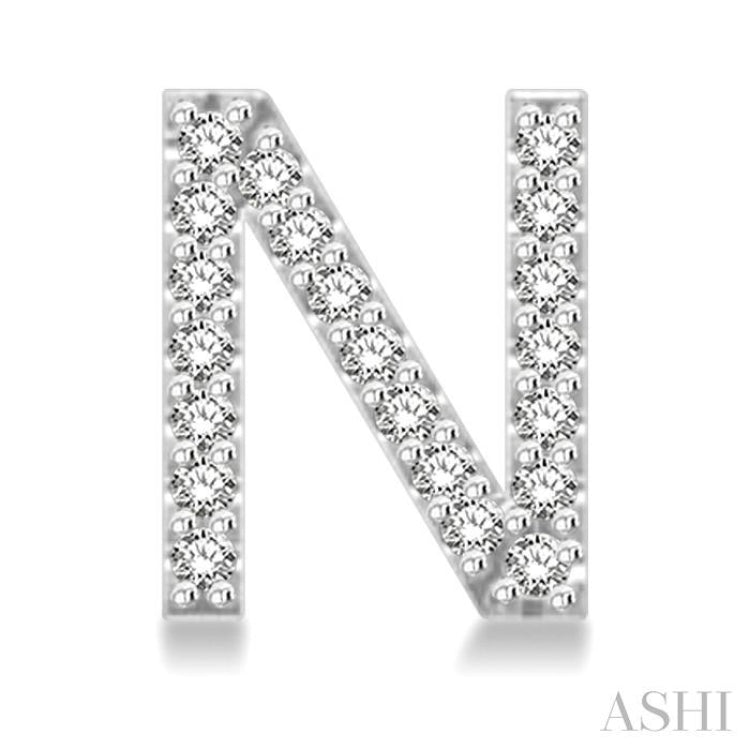 1/8 Ctw Initial 'N' Round Cut Diamond Earrings in 10K White Gold