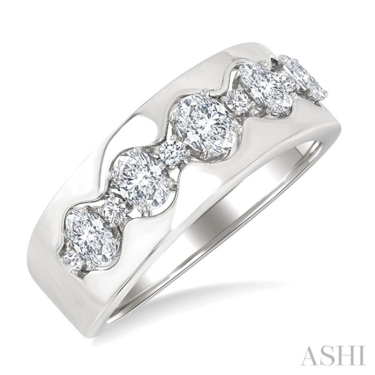 1 Ctw 5-Stone Oval and Round Cut Diamond Wide Fashion Band in 14K White Gold