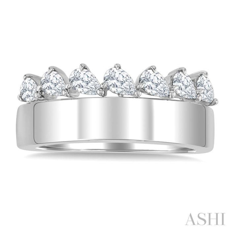 5/8 Ctw Pear Cut Diamond Bold Gold Fashion Wide Band in 14K White Gold