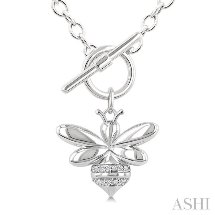 1/20 Ctw Bumble Bee Toggle Single Cut Diamond Fashion Necklace in Sterling Silver