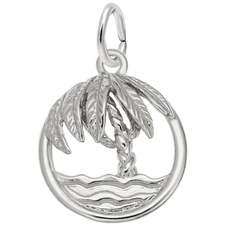 Go back to the sunshine and your feet in the sand with this Beach Palm Tree Charm. A great addition for any beach lover. Available in silver and gold