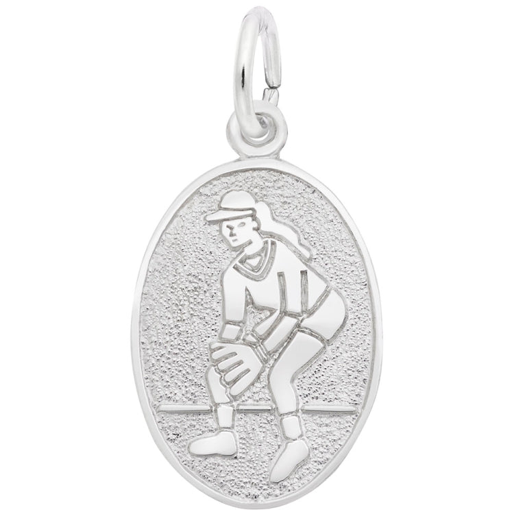 Slide into her heart with the Softball Oval Disc Charm. Engrave a sports slogan on back to rally some team spirit. Available in silver and gold.