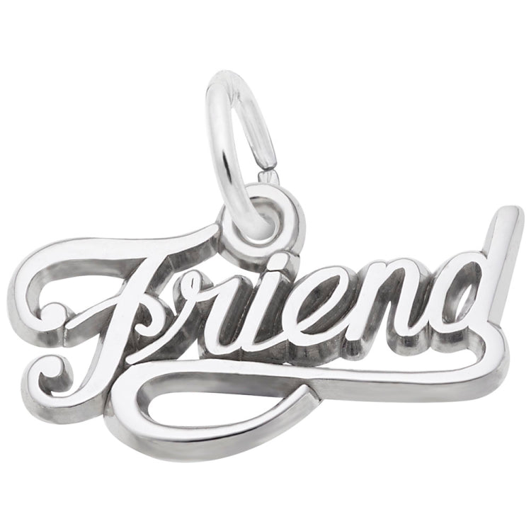 Let your friend know you care with the Friend Script Charm. This charm is perfect for sharing memories with any friend. Available in silver and gold.