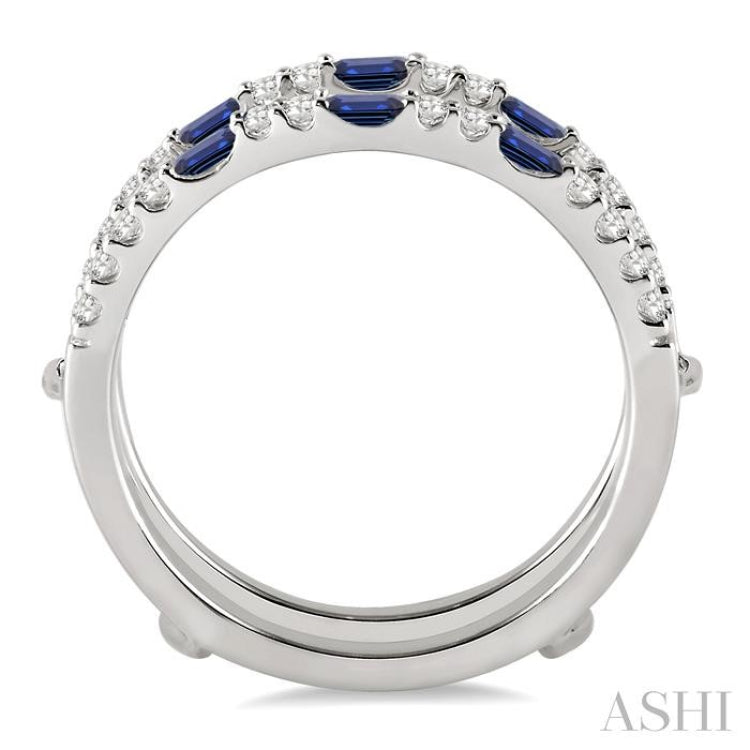 2.5 MM X 1.5 MM Baguette Cut Sapphire and 1/3 Ctw Round Cut Diamond Precious Insert Ring in 14K White Gold