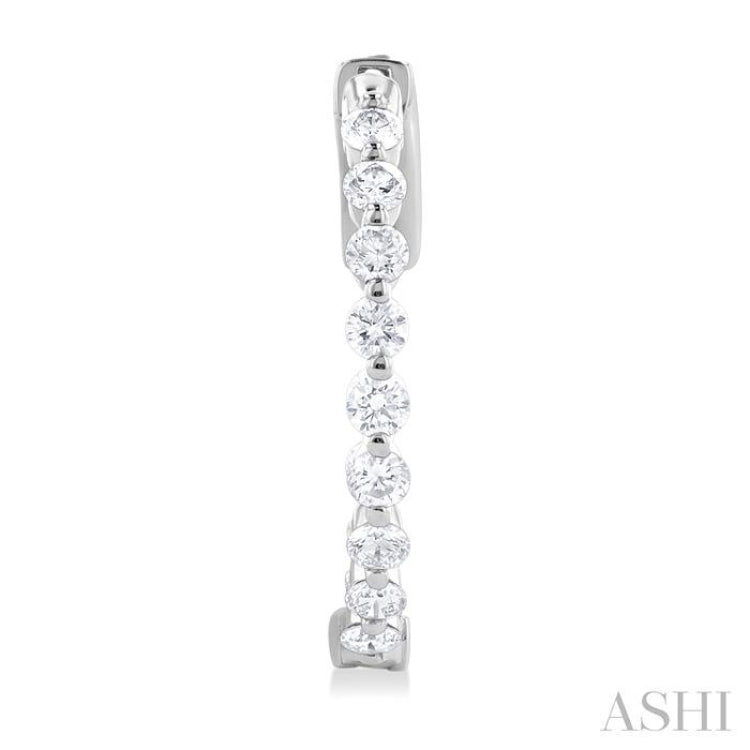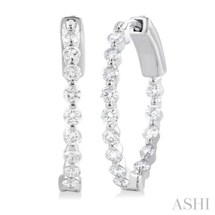 1 ctw Inside-Out Single Prong Set Round Cut Diamond Hoop Earrings in 14K White Gold