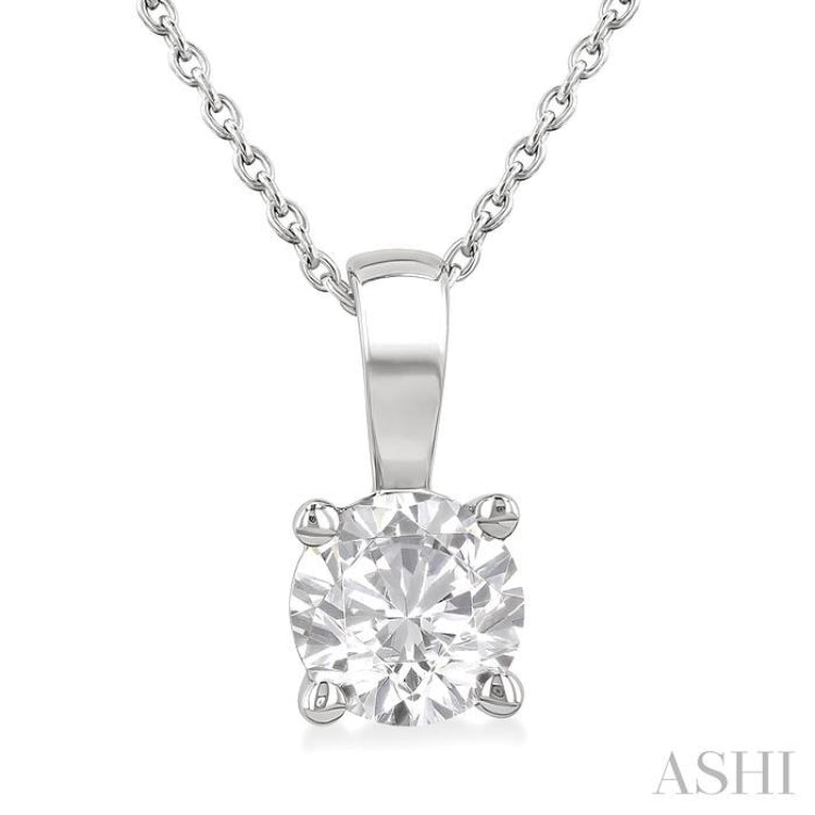 1 Ctw Prong Set Round Cut Diamond Solitaire Pendant With Chain in 14K White Gold